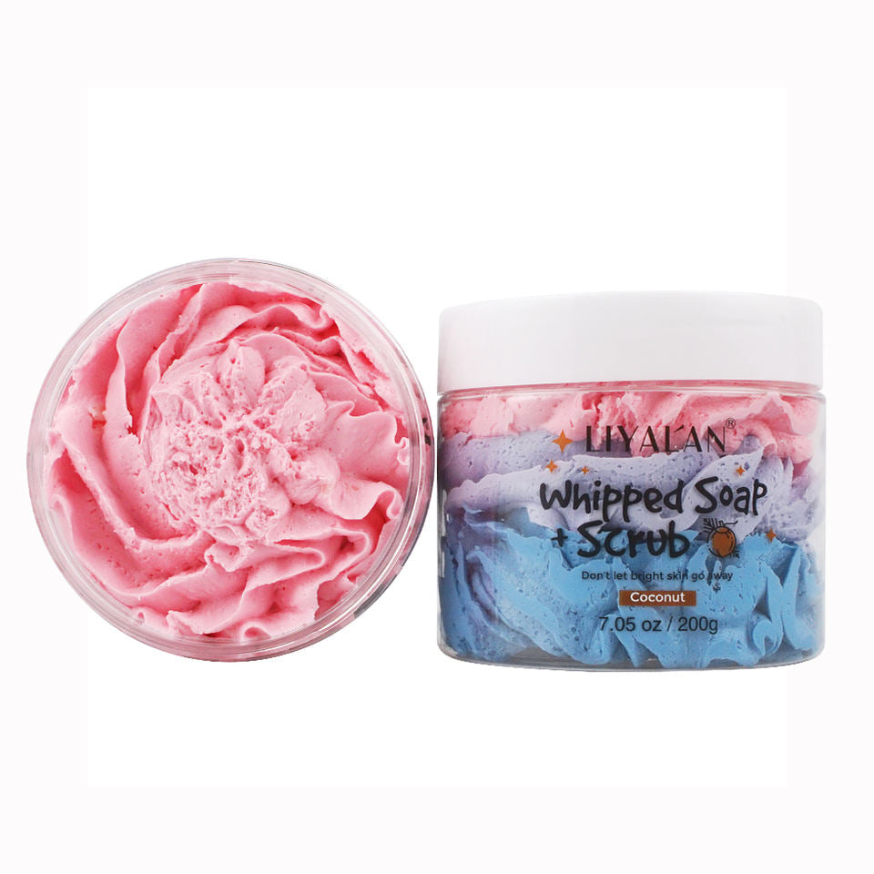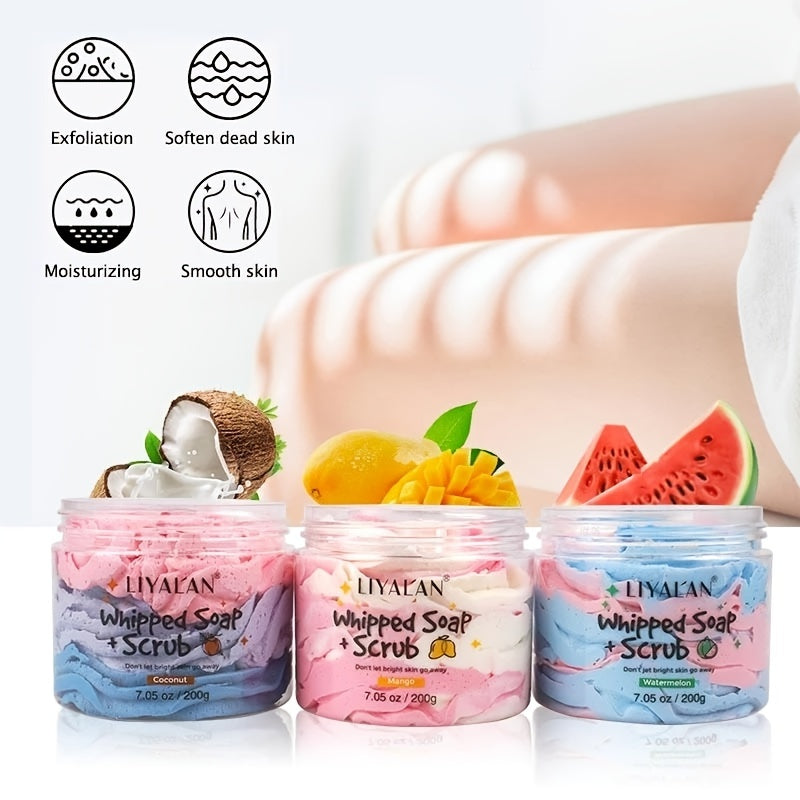 LIYALAN Handmade Bath Soap For Body Wash, Foaming Cream With Fruity Scent, Shea Butter Rainbow Scrub 200g